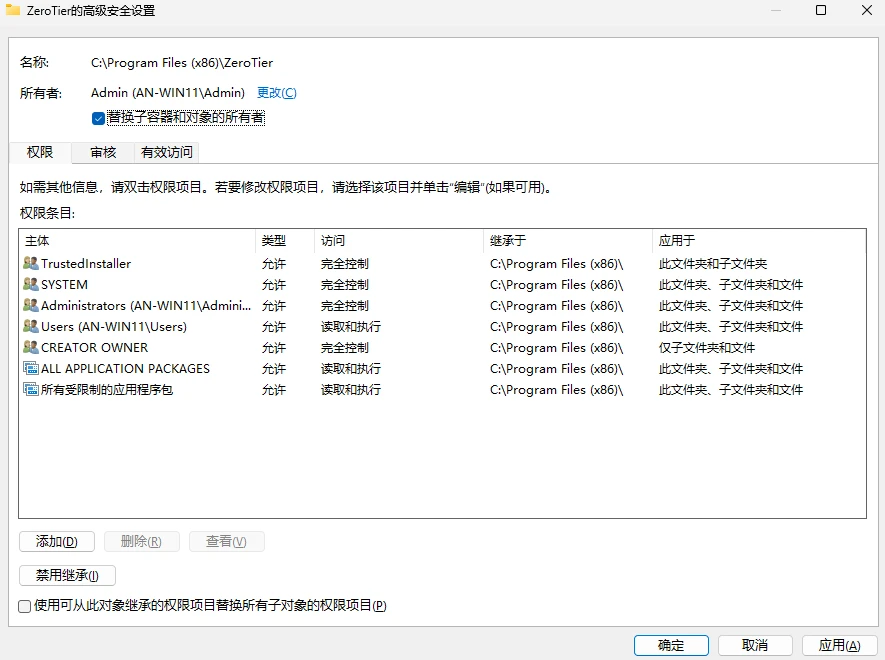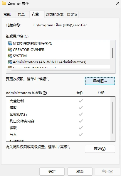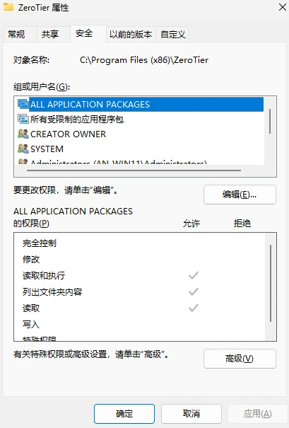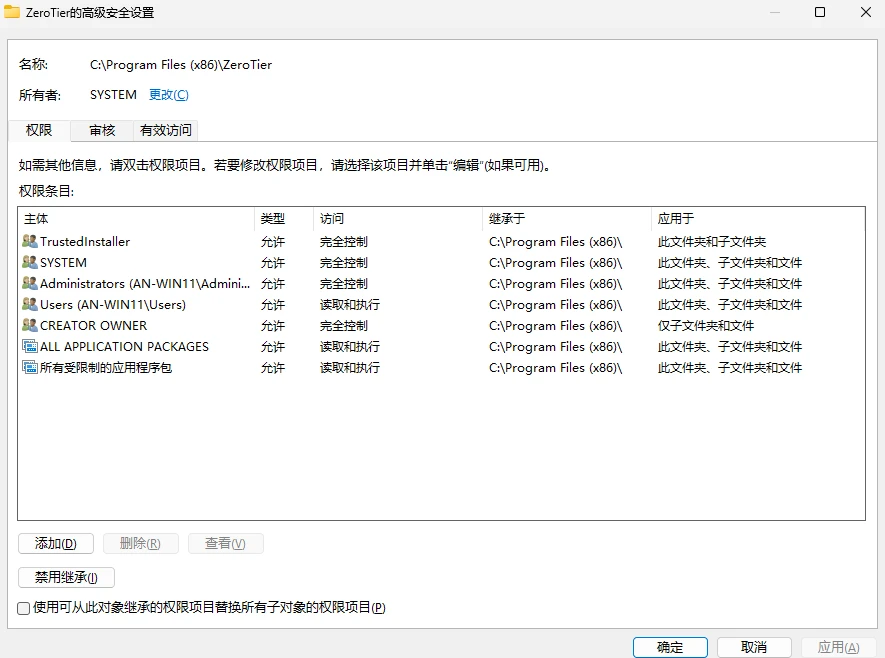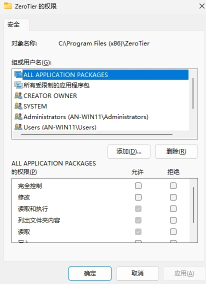 C:\ProgramData\ZeroTierC:\Program Files (x86)\ZeroTierC:\Users\用户名\AppData\Local\ZeroTier在删除残余文件的时候,一般会遇到需要system权限才能更改的问题,提示文件访问被拒绝,你需要权限才能执行操作,提示你需要SYSTEM提供的权限才能对此文件进行修改: