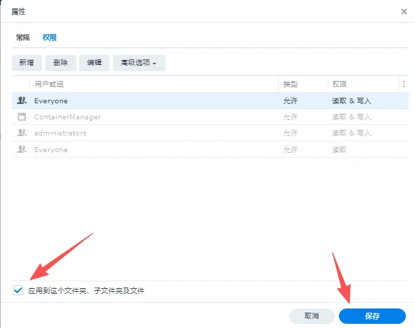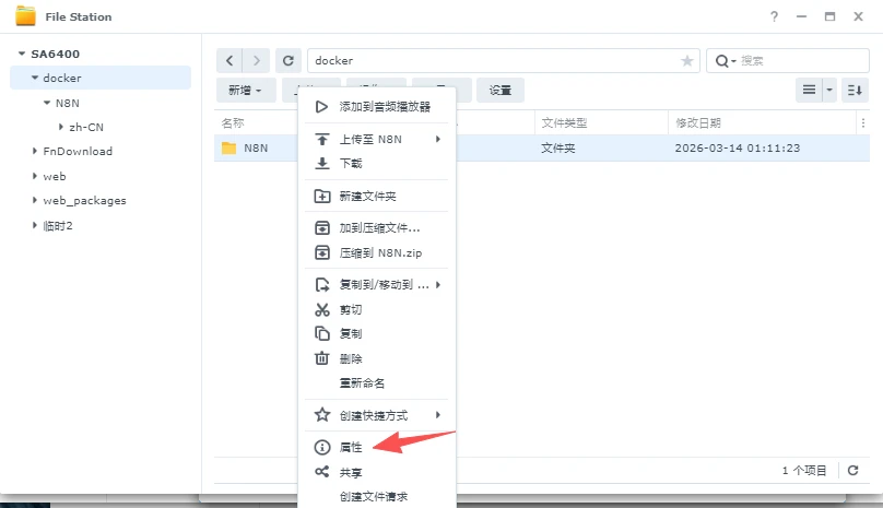 回到docker目录,右键N8N文件夹,点击属性,切换到权限页面