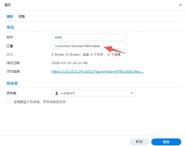 /volume1/docker/N8N/data三、设置权限