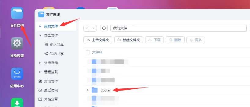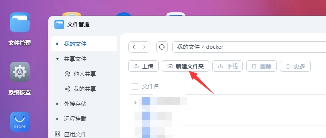 打开飞牛OS桌面的【文件管理】,双击进入【docker】文件夹,选择【创建文件夹】,文件夹名称【openlist】
