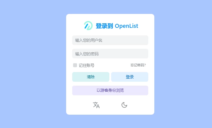 打开openlist项目,输入账号admin,密码为日志中的随机密码,登录